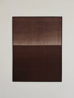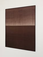 composition with individually dip dyed pieces of handwoven khadi silk, stitched together. stretched over an artist frame.